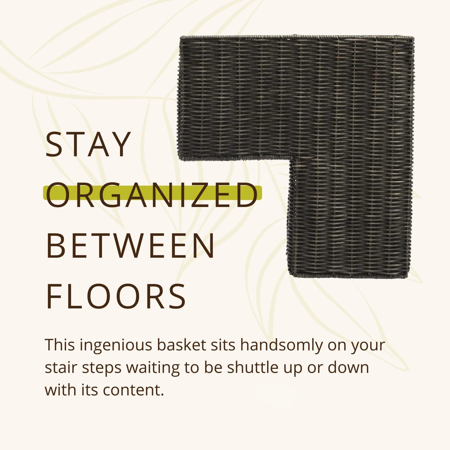 This ingenious basket sits handsomly on your stair steps waiting to be shuttle up or down with its content. Place whatever needs to switch floors in this sturdy basket hand woven from Wicker. Whenever it is time to carry its load this refined storage basket will be ready waiting for you.