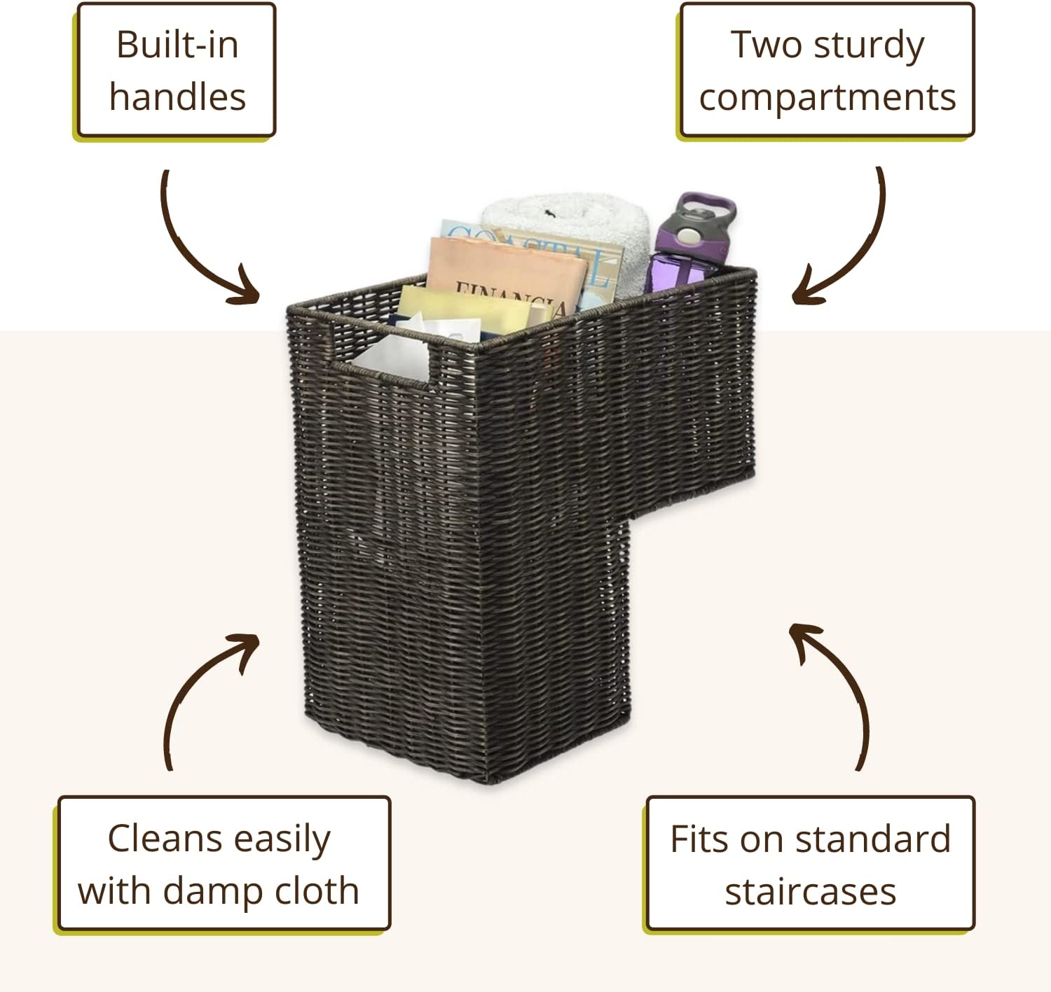 Two Large CubbiesOur stair basket is split into two sections to help separate smaller and larger items. Stay organized and end the misplacement of items! |